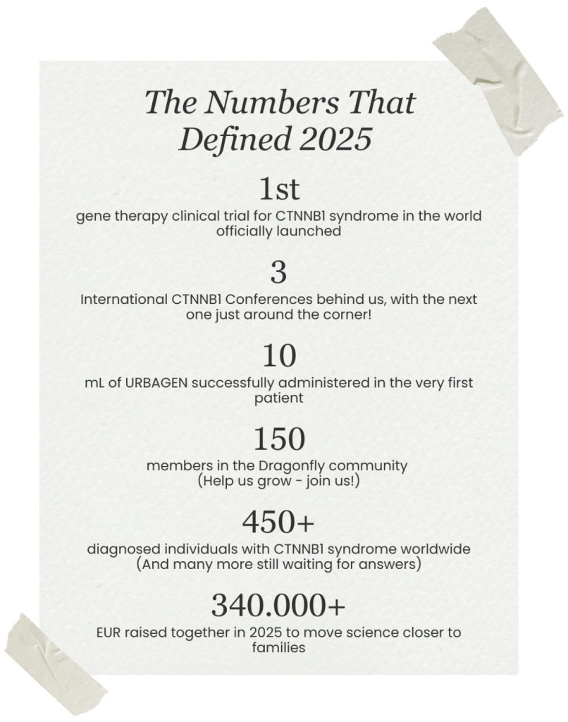 Dear CTNNB1 community, We took a short break at the beginning of the year due to an exceptionally busy period, but we’re excited to be back with a new edition of our monthly newsletter. 🗞️ This issue brings both hope and honesty. 💙 We’re pleased to share key advancements in our gene therapy program, including […]